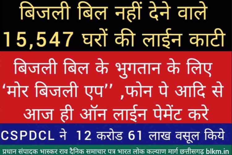 बिजली बिल का भुगतान नहीं करने वाले 15547 बकायेदारों के विद्युत कनेक्शन काटे