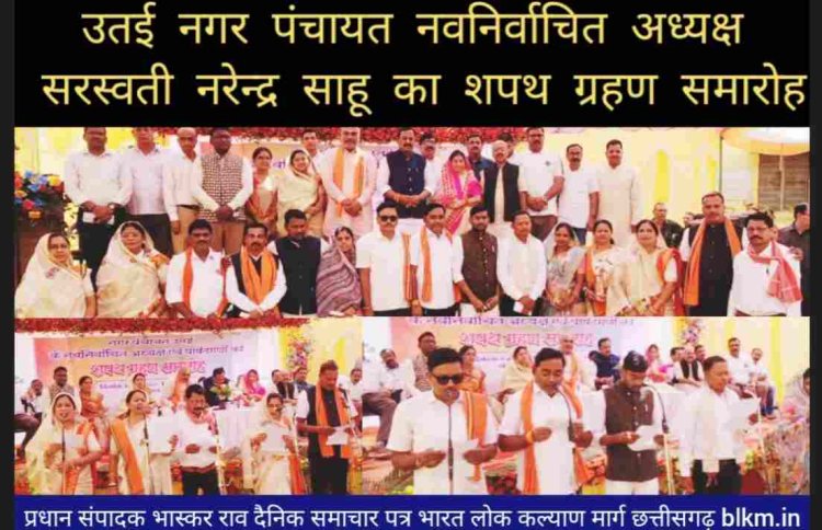दुर्ग सांसद विजय बघेल के मुख्य अतिथ्य और ग्रामीण विधायक ललित चंद्रकर की अध्यक्षता में उतई नगर पंचायत नवनिर्वाचित अध्यक्ष सरस्वती नरेन्द्र साहू का शपथ ग्रहण समारोह