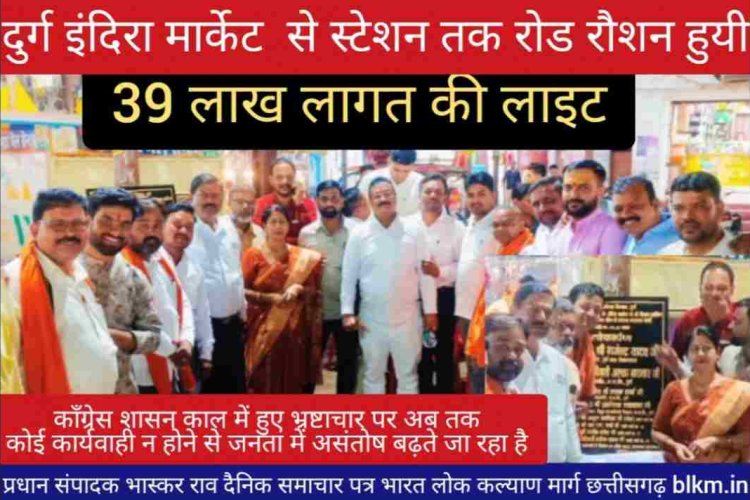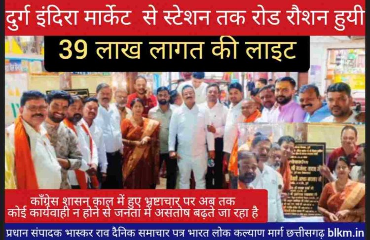 दुर्ग महापौर अलका बाघामर ने शहर के व्यस्ततम इंदिरा मार्केट मे 39 पोल के साथ ही 110 वाट की 86 एलईडी लाइट का शुभारंभ किया