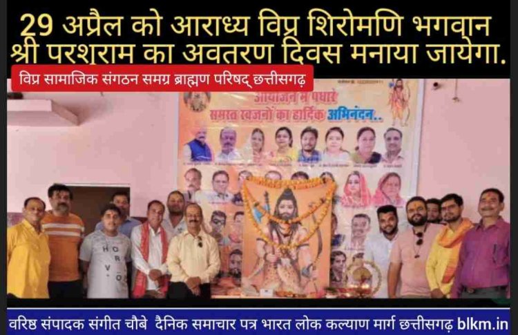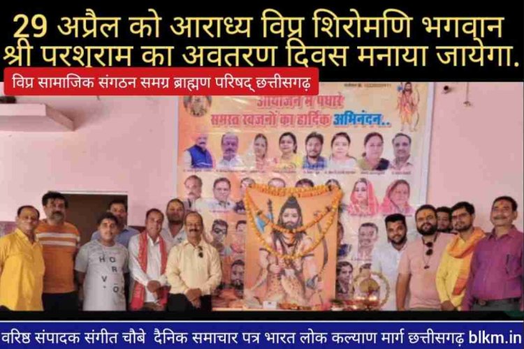 29 अप्रैल मंगलवार को भगवान श्री परशुराम का अवतरण दिवस सादगी से मनाया जायेगा