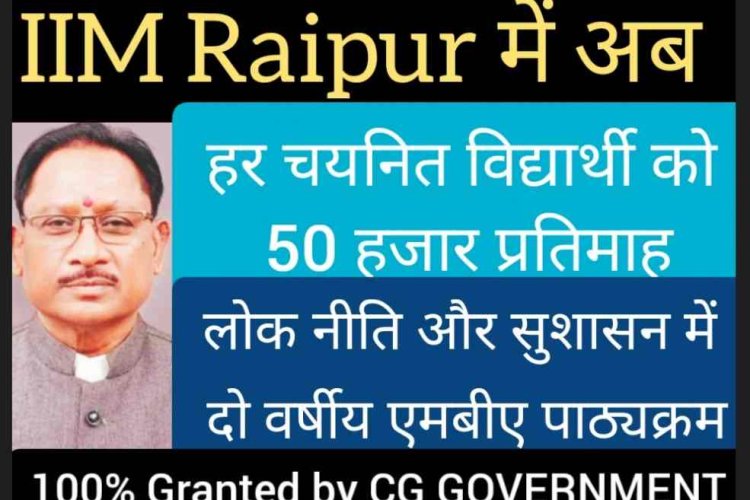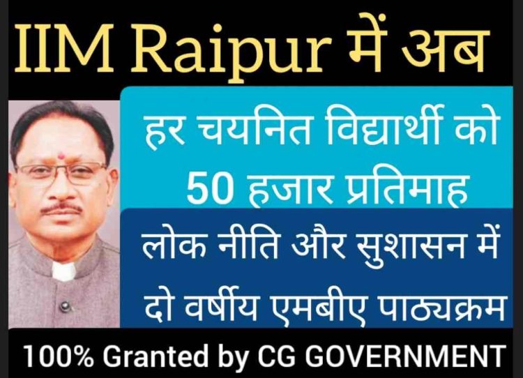CM साय द्वारा घोषित छत्तीसगढ़ मुख्यमंत्री सुशासन फेलोशिप में आईआईएम रायपुर के लोक नीति और सुशासन में दो वर्षीय एमबीए पाठ्यक्रम में चयनित हर विद्यार्थी को 50 हजार प्रतिमाह मिलेंगे
